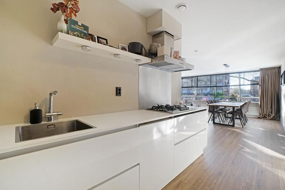 At the front of the apartment is the luxuriously semi-open kitchen which is equipped with built-in appliances. From the semi-open kitchen you'll view the living/dining room, which is provided from a lot of light through the large windows in the apartment.