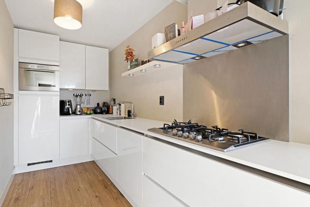 Aan de voorzijde van de woning bevindt zich de luxe afgewerkte open keuken welke is voorzien van inbouwapparatuur. Vanaf de open keuken heeft u zicht op de woon/-eetkamer die veel lichtinval kent door de grote raampartijen die de woning beschikt. Dit zorgt voor een prettige en zonnige sfeer in huis.