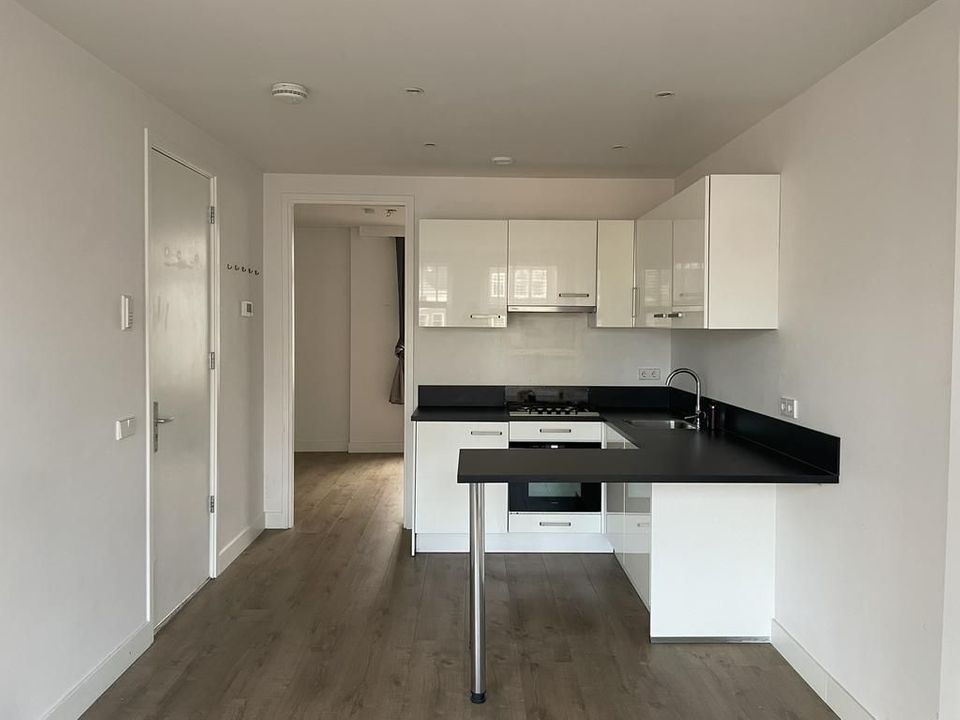 Eigen entree; lichte woonkamer met open keuken v.v. inbouwapparatuur, slaapkamer aan de achterzijde met toegang tot de badkamer v.v. inloopdouche, wastafel en toilet. De woning wordt met vloer opgeleverd.