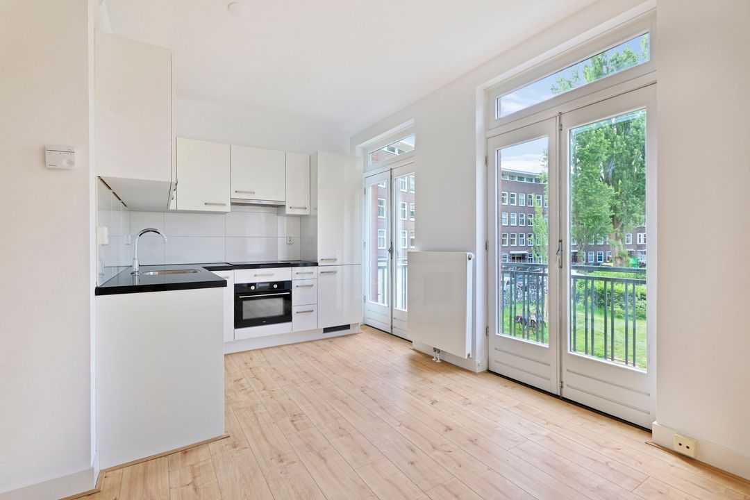 Gelegen in stadsdeel De Baarsjes in Amsterdam West, in een rustige omgeving tussen de Kostverlorenvaart en de Willem de Zwijgerlaan. Binnen no time sta je in de gezellige Jordaan of hartje centrum. In de directe omgeving vind je alle dagelijkse voorzieningen met een groot aanbod aan winkels, delicatessenzaken en supermarkten, maar ook aan gezellige restaurants en cafés is geen gebrek. Even verderop vind je De Hallen, een populaire culturele hotspot met een bioscoop, een indoor foodmarket, kunst en cultuur. Voor ontspanning in het groen kun je terecht in nabijgelegen parken zoals het Erasmuspark of het Rembrandtpark.