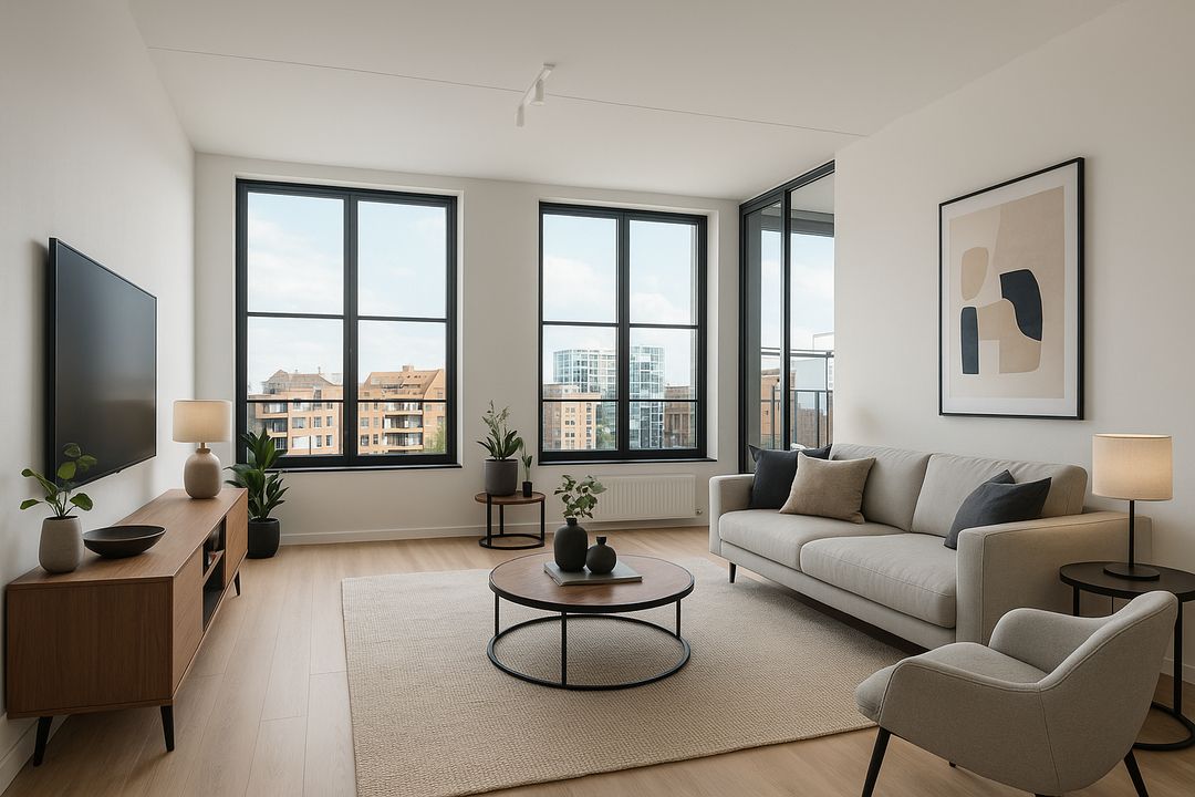 Ruim tweekamerappartement gelegen op de derde verdieping, bereikbaar via zowel de gemeenschappelijke lift als het trappenhuis.