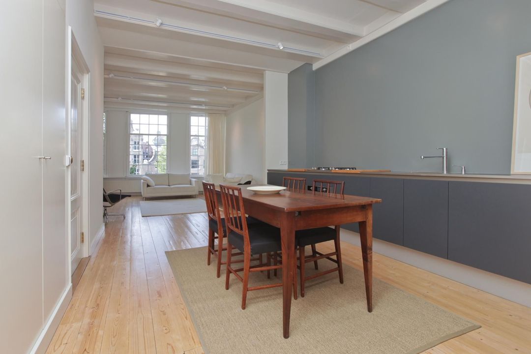 Het appartement aan de gracht met een historische karakteristieke achtergrond (1688) is gelegen in het centrum van Amsterdam. Op loopafstand bevinden zich de Dam, de Kalverstraat, bioscopen, restaurants en cafés. Voor de dagelijkse boodschappen, evenals winkelen in het algemeen kun je terecht bij de nabijgelegen winkels in het centrum van de stad.