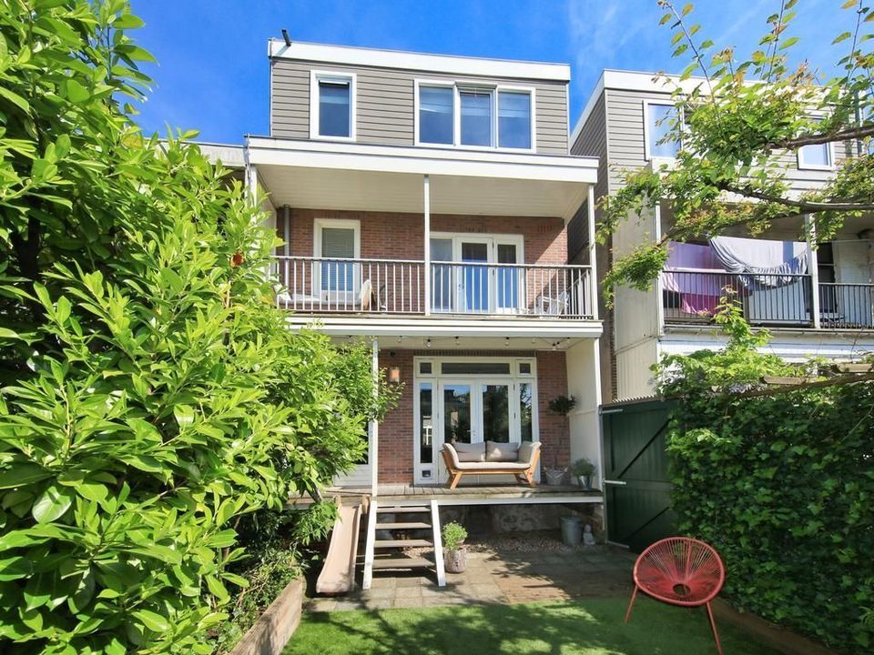 Ontdek de moderne achtertuin, compleet met terras, groene afscheidingen en een tuinberging met voldoende bergruimte, allemaal ideaal gelegen op het westen en met een achterom. In 2023 is kwalitatief hoogwaardig en kindvriendelijk kunstgras aangelegd. De tuin vormt een naadloze verbinding met de woonkeuken, waardoor binnen en buiten één worden. Op de veranda geniet je van ontspannen momenten in een comfortabele lounge set, terwijl de zon je omarmt. Handig om te weten: voor fietsers is er een rechtstreekse toegang via de steeg naar de tuin en berging, die beschikt over voldoende bergruimte voor fietsen, gereedschap en tuinmeubilair. Het dak van de berging is in 2023 geheel vervangen en opnieuw voorzien van dakbedekking.